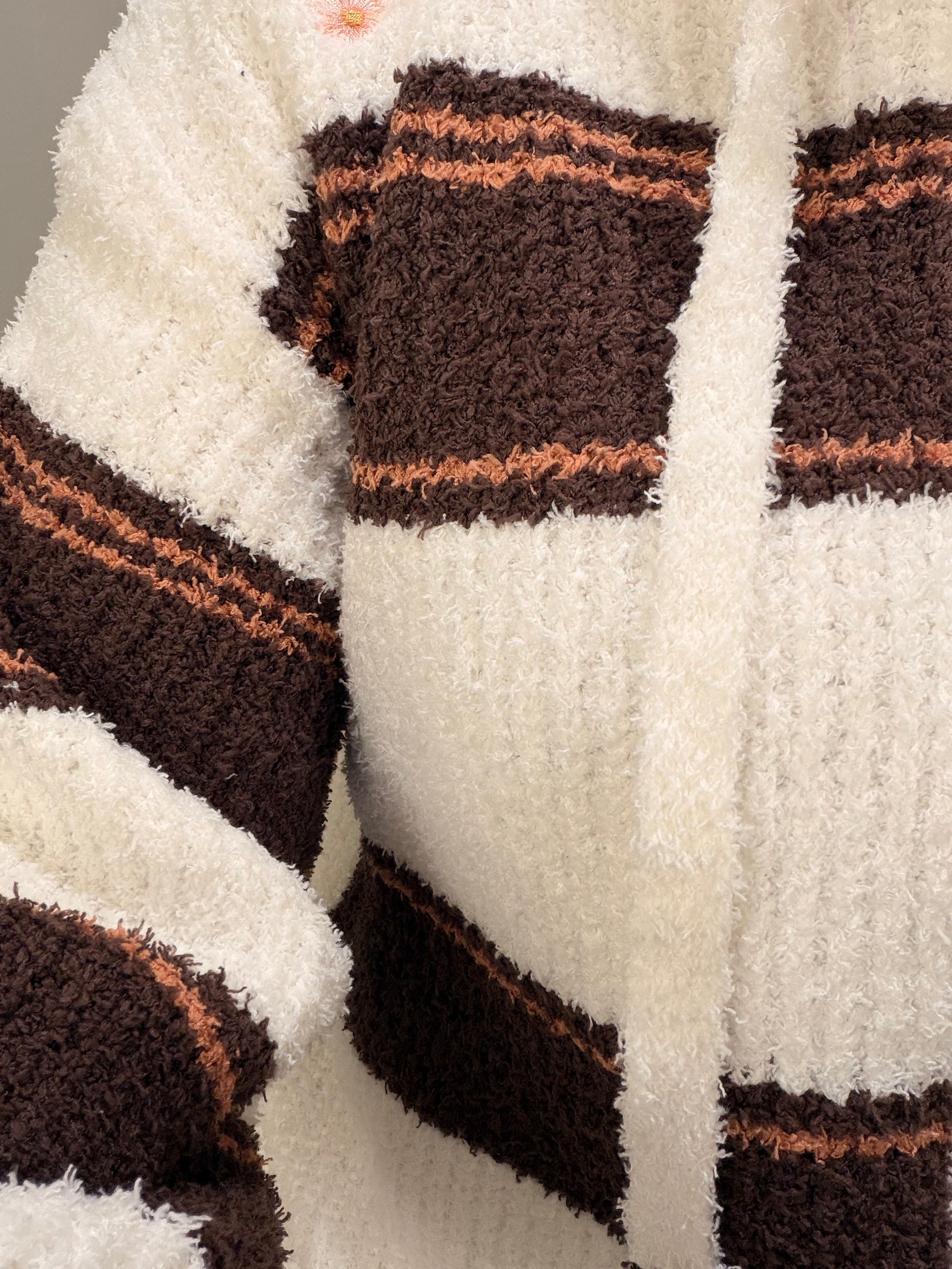 Elevate your wardrobe with this thoughtfully crafted cardigan that seamlessly blends classic tailoring with artisanal detail. Featuring intricate embroidered florals layered over complementary striped panels, each piece showcases careful patchwork construction that adds visual depth and texture. The expert combination of embroidery and stripe work creates a sophisticated silhouette perfect for layering, while the floral accents introduce a refined botanical element. Ideal for those who appreciate quality craftsmanship and distinctive design.