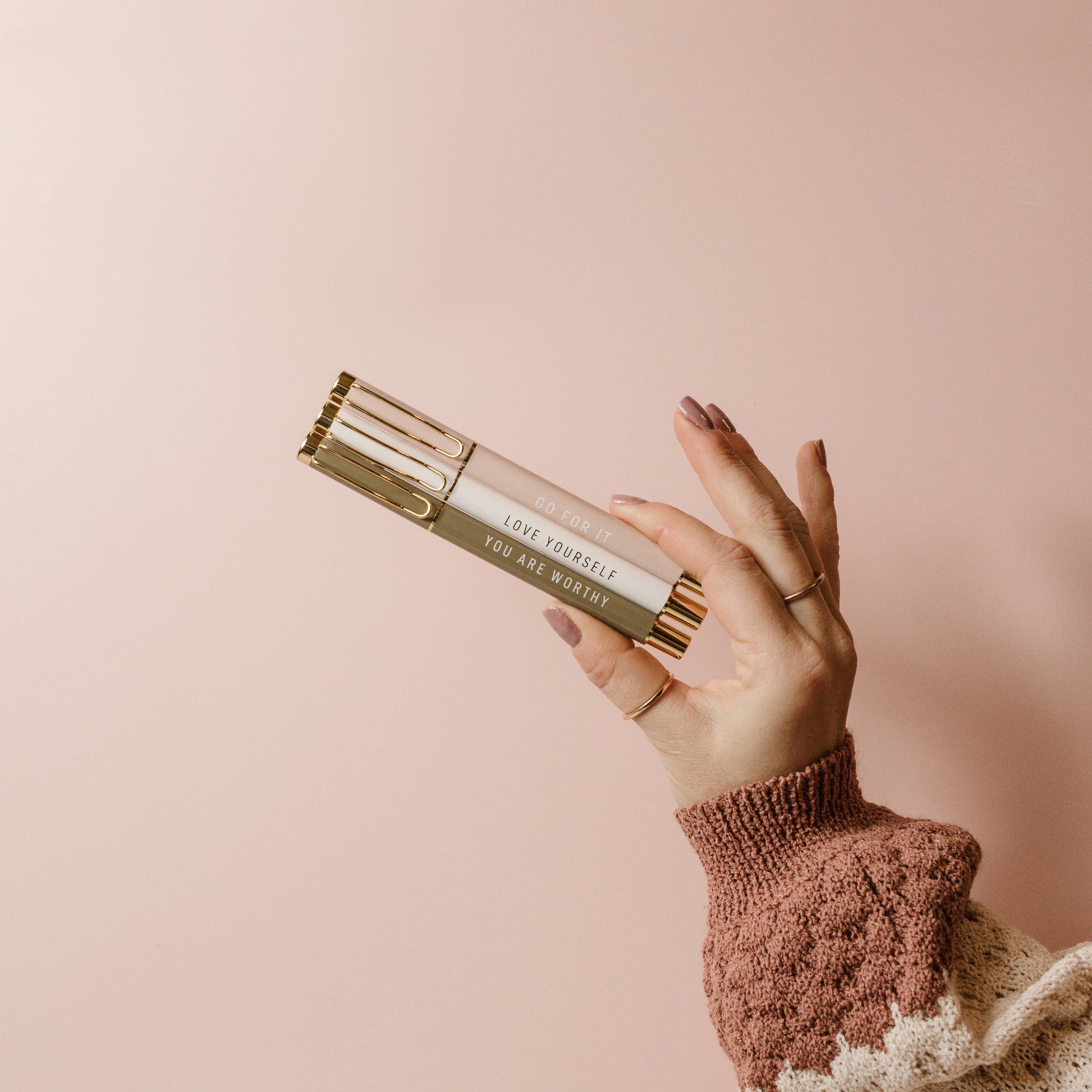 Transform your daily writing into a powerful ritual of intention. This premium metal pen set combines sleek design with purposeful messaging, reminding you to embrace boldness with every stroke. Perfect for journaling your goals, signing important documents, or gifting to someone chasing their dreams. The substantial feel of quality metal construction delivers confidence in hand, while the "Go For It" message serves as a daily nudge toward action. Whether displayed on your desk or tucked into your bag, this pen set inspires you to write your own success story.
