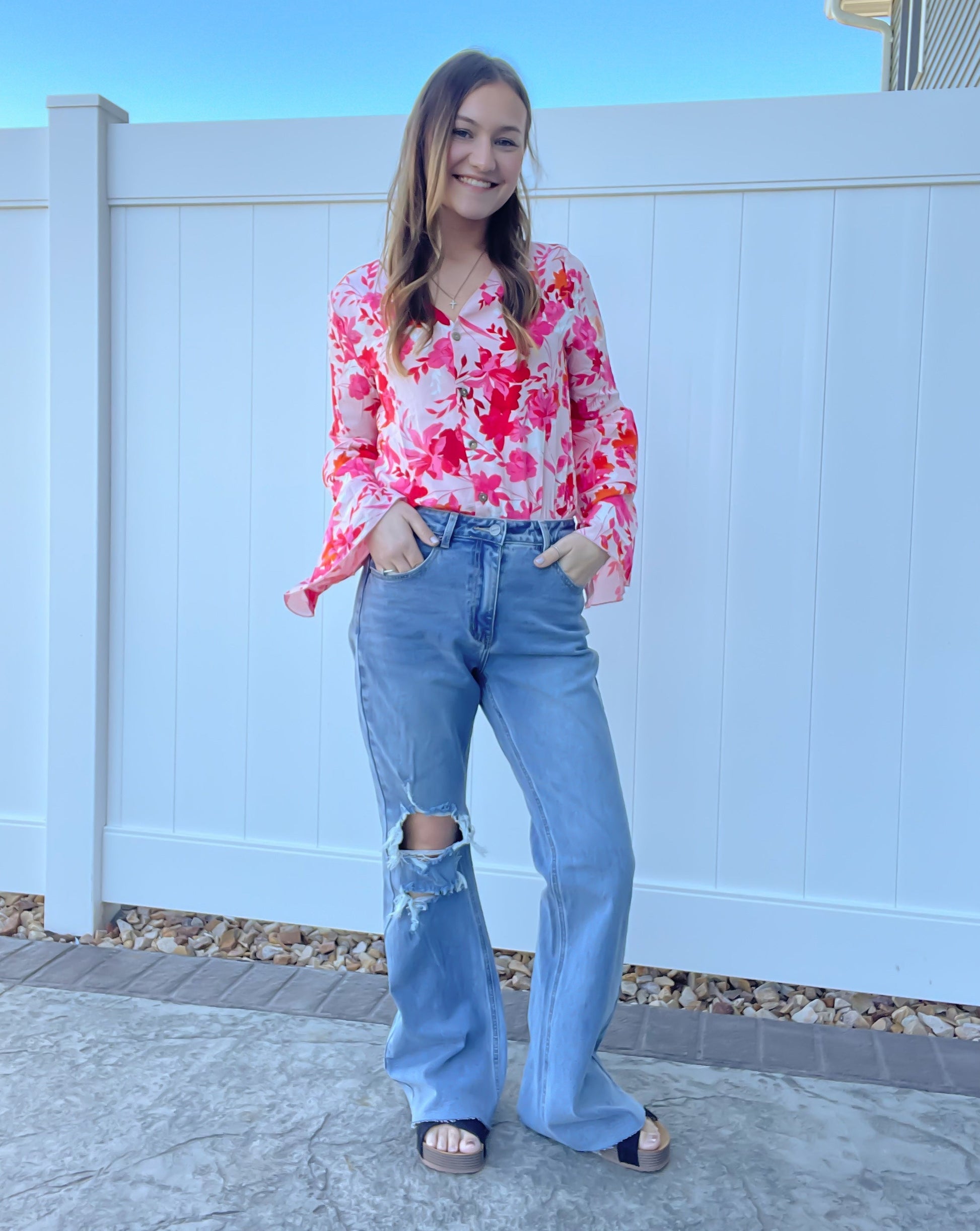 The Hailey Distressed Flare High Rise Denim Jeans are perfect for everyday wear or a casual date night. Crafted with a high rise and long leg, these jeans offer a comfortable, flattering fit with a stylish flare. The raw hem at the bottom adds the perfect, rugged look. The classic design will give your wardrobe a timeless, on-trend look with minimal effort.