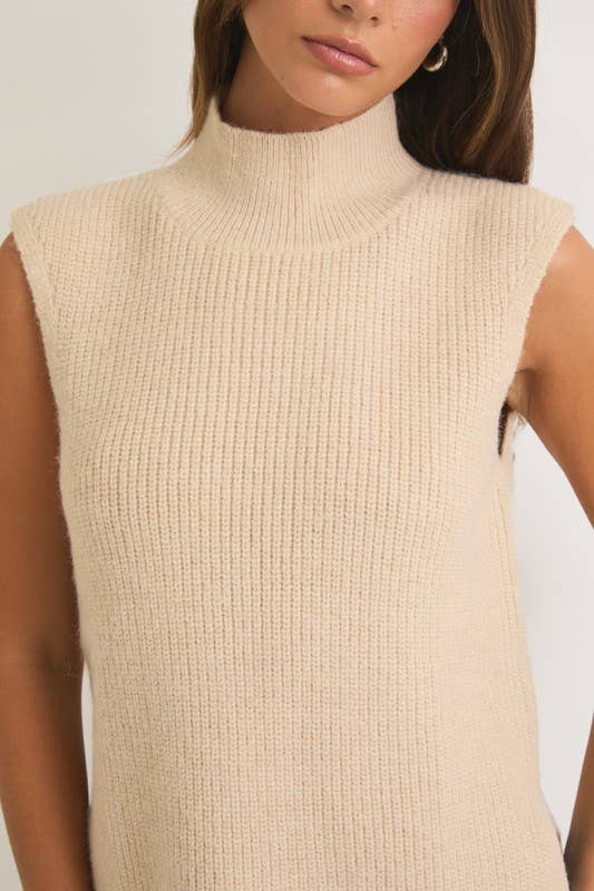 High Neck Sleeveless Sweater Top