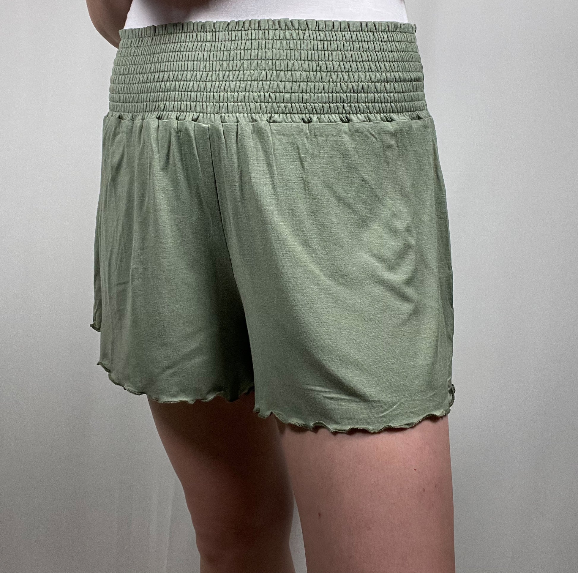These Lacey Smocked Shorts are designed to enhance your appearance and improve your comfort. The high waistband, made of 95% rayon and 5% spandex, ensures a flattering fit and a breezy silhouette. The lettuce edging on these shorts adds a subtle touch of femininity, providing a delicate and charming detail to the garment.. With these shorts, you can look and feel your best.