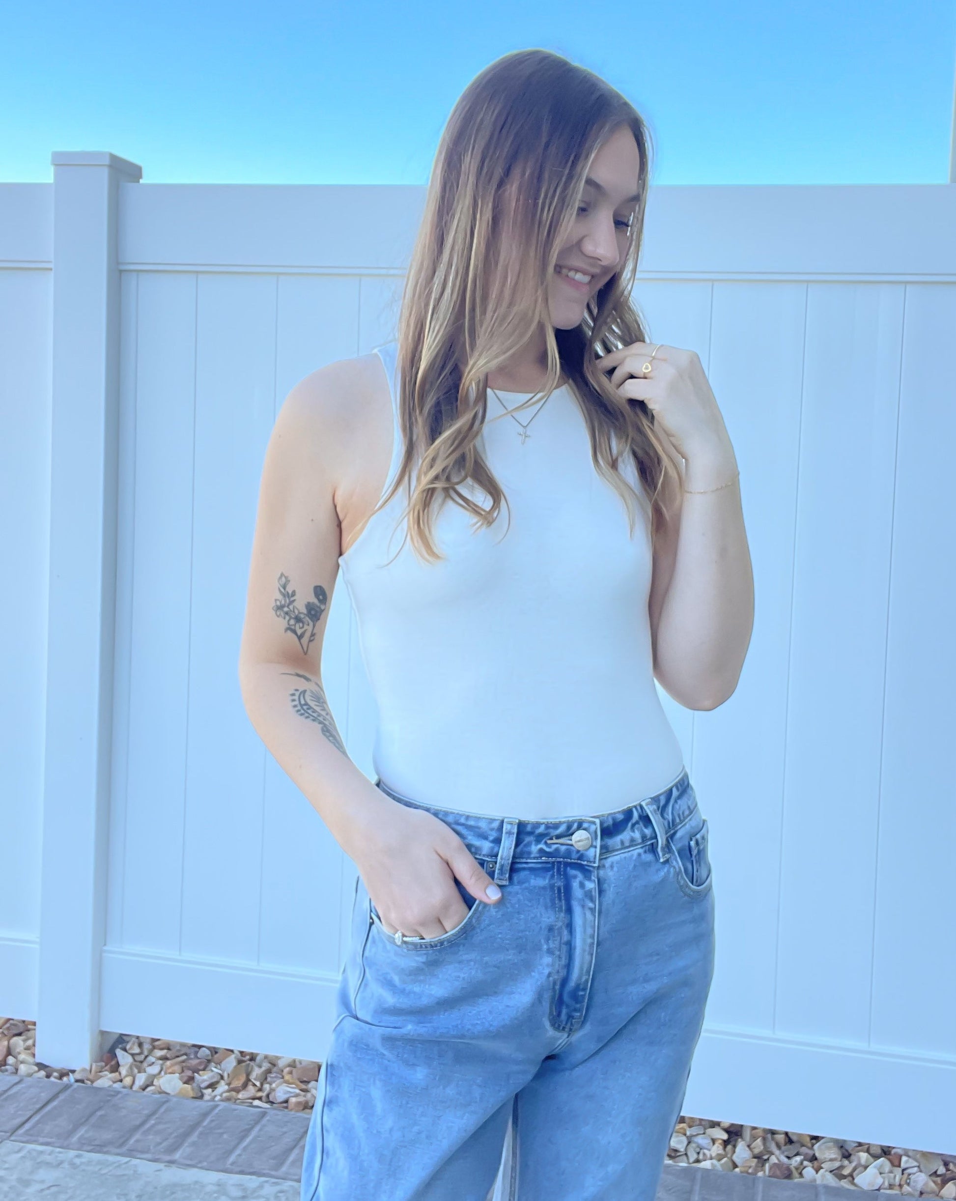 This lightweight, super soft bodysuit offers a sleek and simple style while also contributing comfort. Wear it with a pair of denim jeans or shorts.